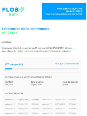 Vous recevrez un e-mail détaillant votre échéancier à la première mensualité puis avant chaque prélèvement.