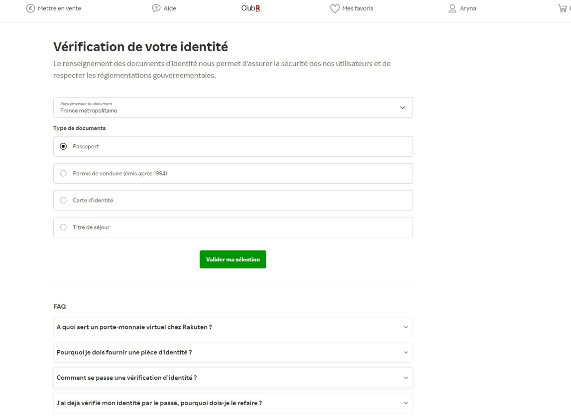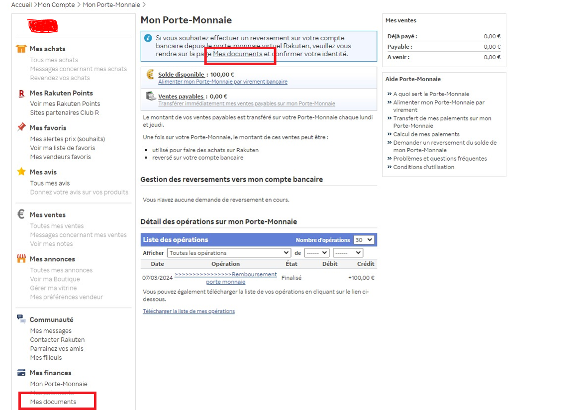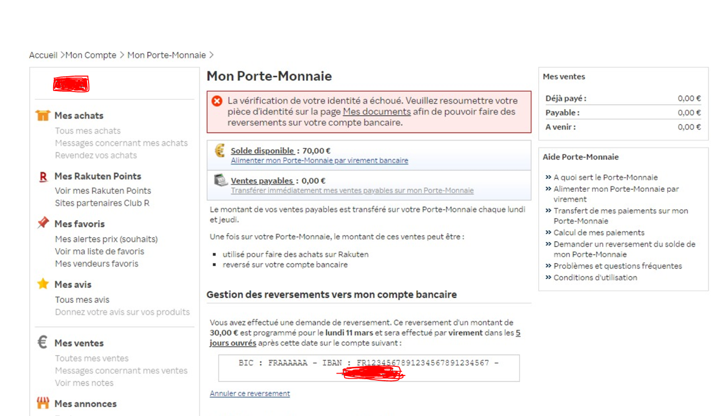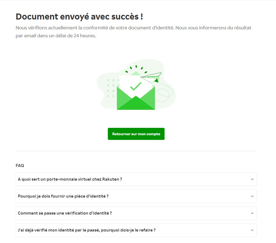 Les informations et documents fournis ont pour unique but de confirmer que vous êtes bien le détenteur légitime du Porte-Monnaie, et ne seront ni conservés par Rakuten, ni transmis à un organisme tiers.