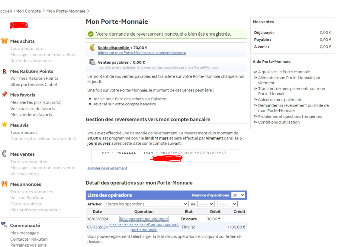 - Créditer mon porte-monnaie en obtenant par exemple des remboursements