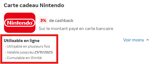 Choisir votre mode de paiement💸: Vous pouvez acheter les cartes cadeaux et bons d'achats en utilisant votre carte bancaire et/ou votre cashback (si éligible) sur le compte Rakuten. Il se peut que certaines cartes ne soient pas payables avec le cashback, ils sont facilement distinguables grâce aux étiquettes qui leur est attachée.