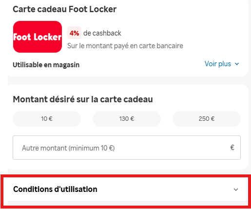 En cas de problème avec votre carte cadeau ou bon d'achat, veuillez vérifier que les conditions d'utilisation spécifiques sont respectées en vous rendant sur l'enseigne choisi :