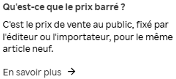 Exibir este preço permite-nos, portanto, realizar uma comparação entre o preço de venda ao público fixado pelo editor ou importador para o mesmo artigo novo, e o preço pelo qual o vendedor escolhe vender este produto em segunda mão na plataforma Rakuten.
